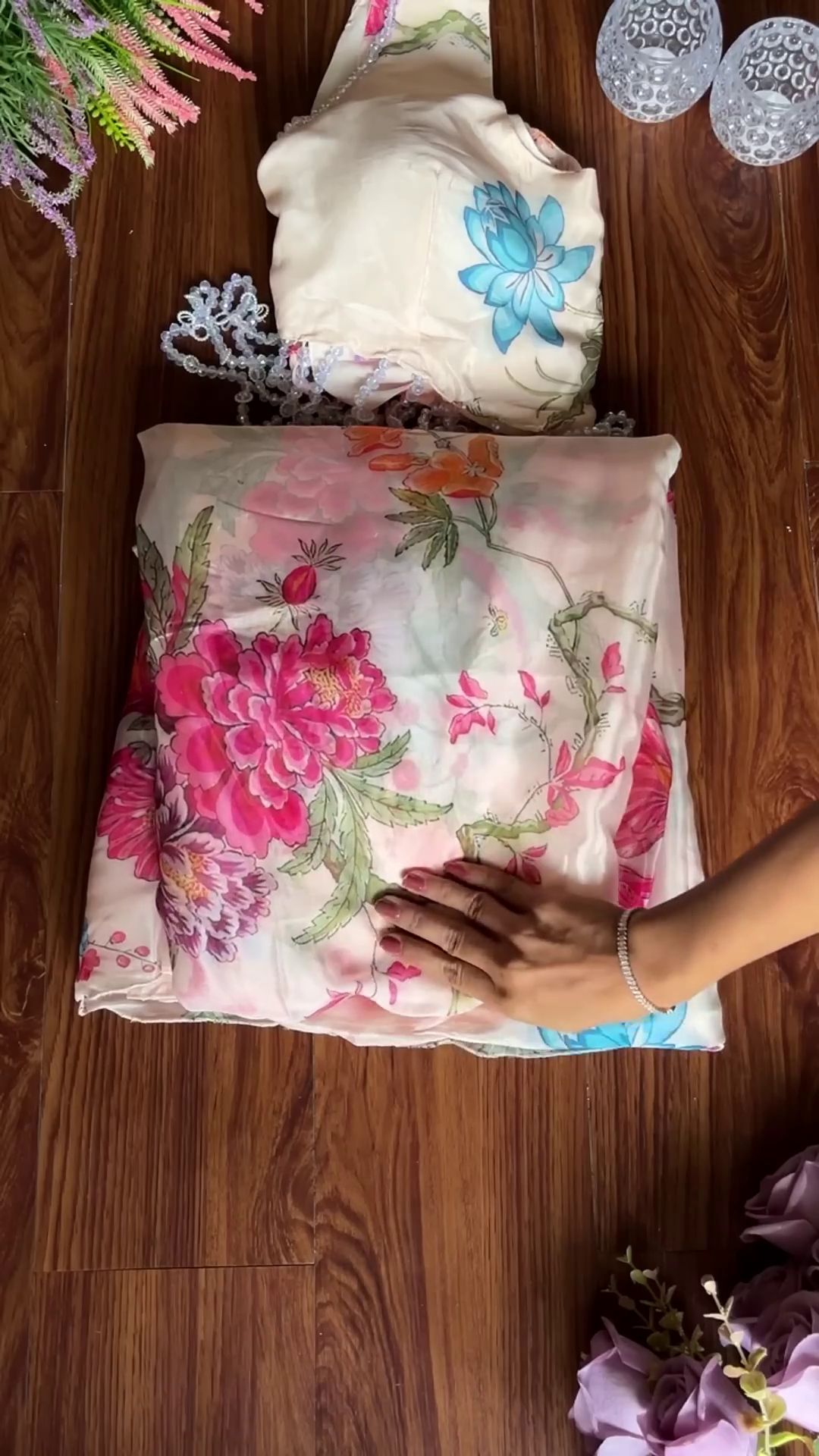 ✔️ Botanical Artistry: Close-up views highlight the high-definition floral prints featuring roses and lotus motifs in vivid colors.