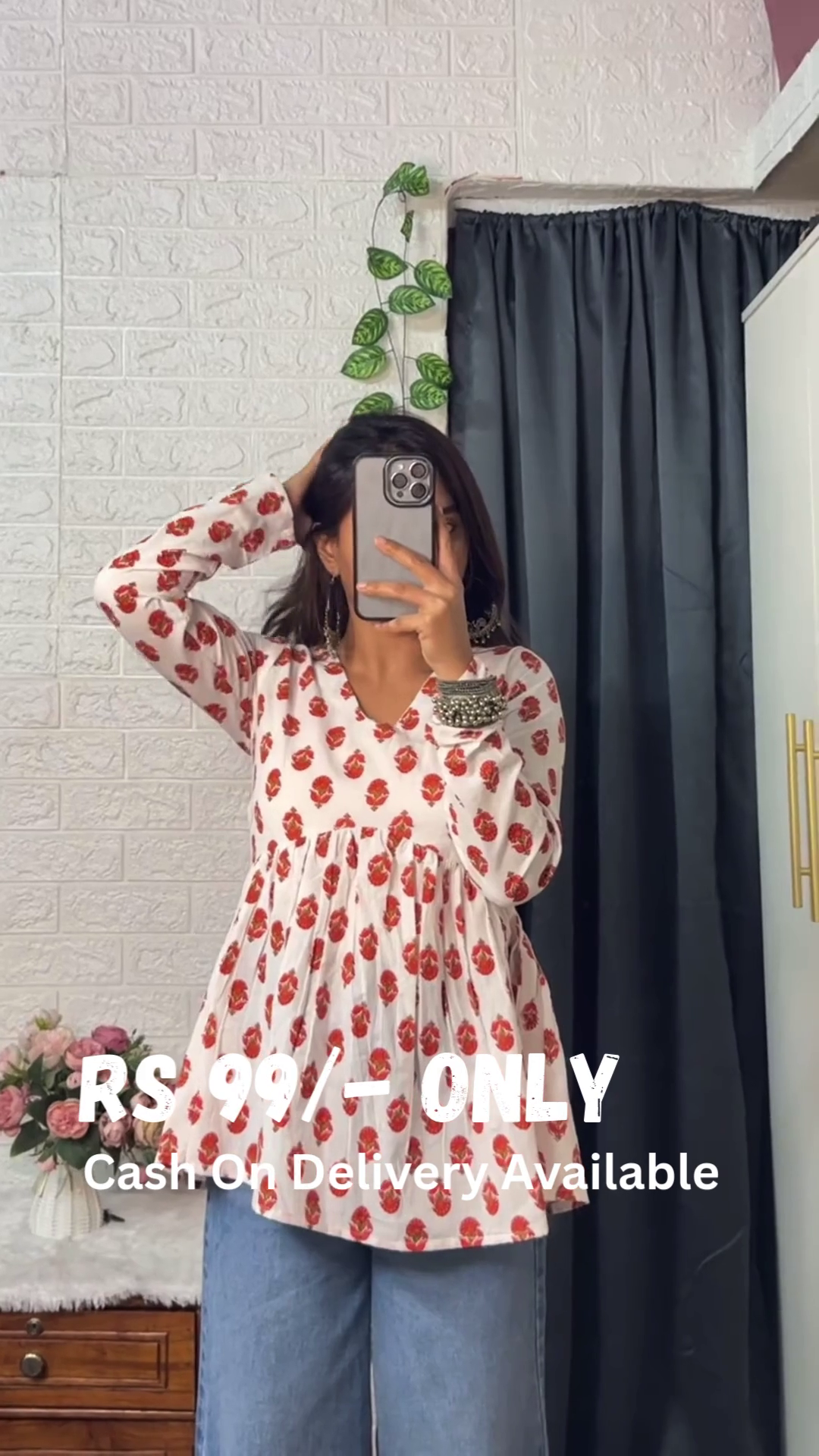 Design & Craftsmanship: This peplum-style top features a relaxed silhouette with a flattering V-neckline and full sleeves, giving it an effortlessly chic vibe. The gathered waistline enhances the shape, making it a perfect blend of comfort and style. The beautiful floral print adds a fresh, feminine touch, making this top a must-have in your wardrobe.