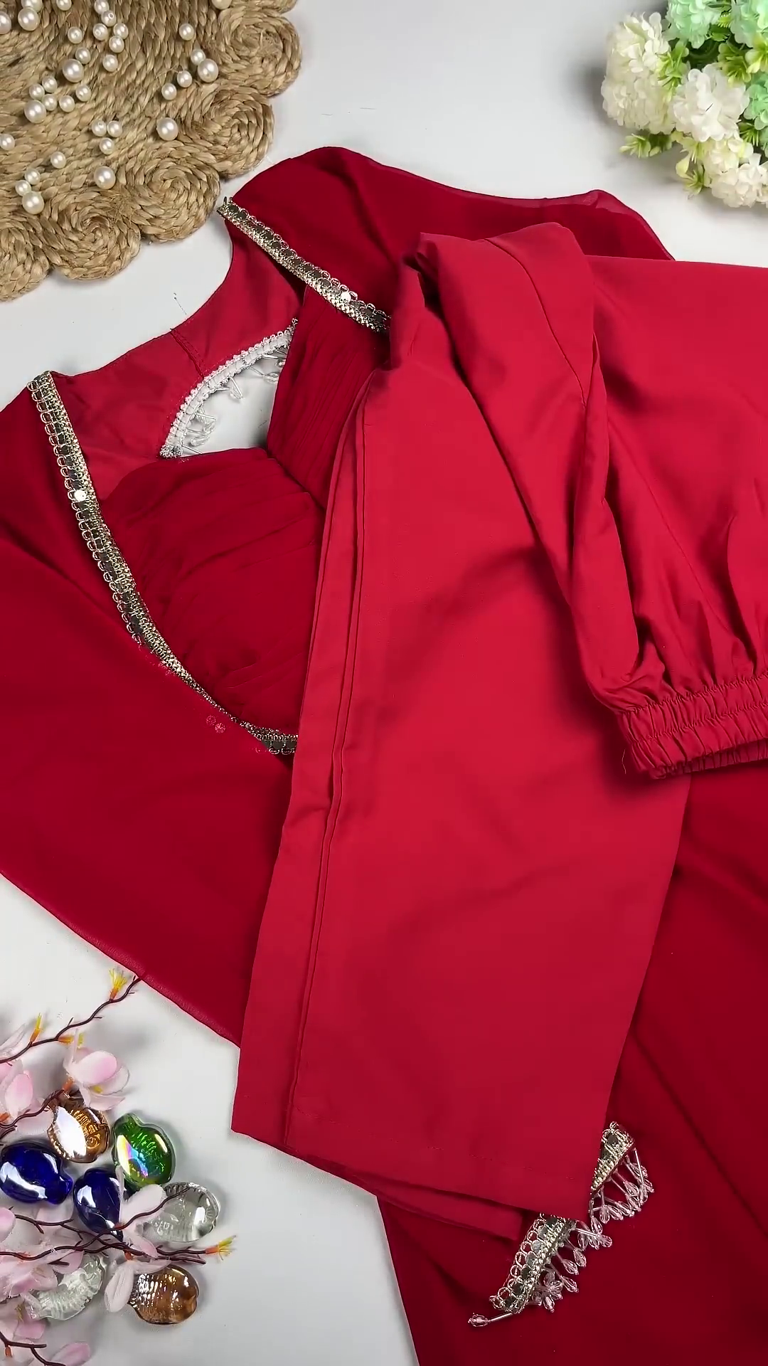 Base Color: Crimson Red — a timeless, passionate hue perfect for red-carpet events and formal celebrations.