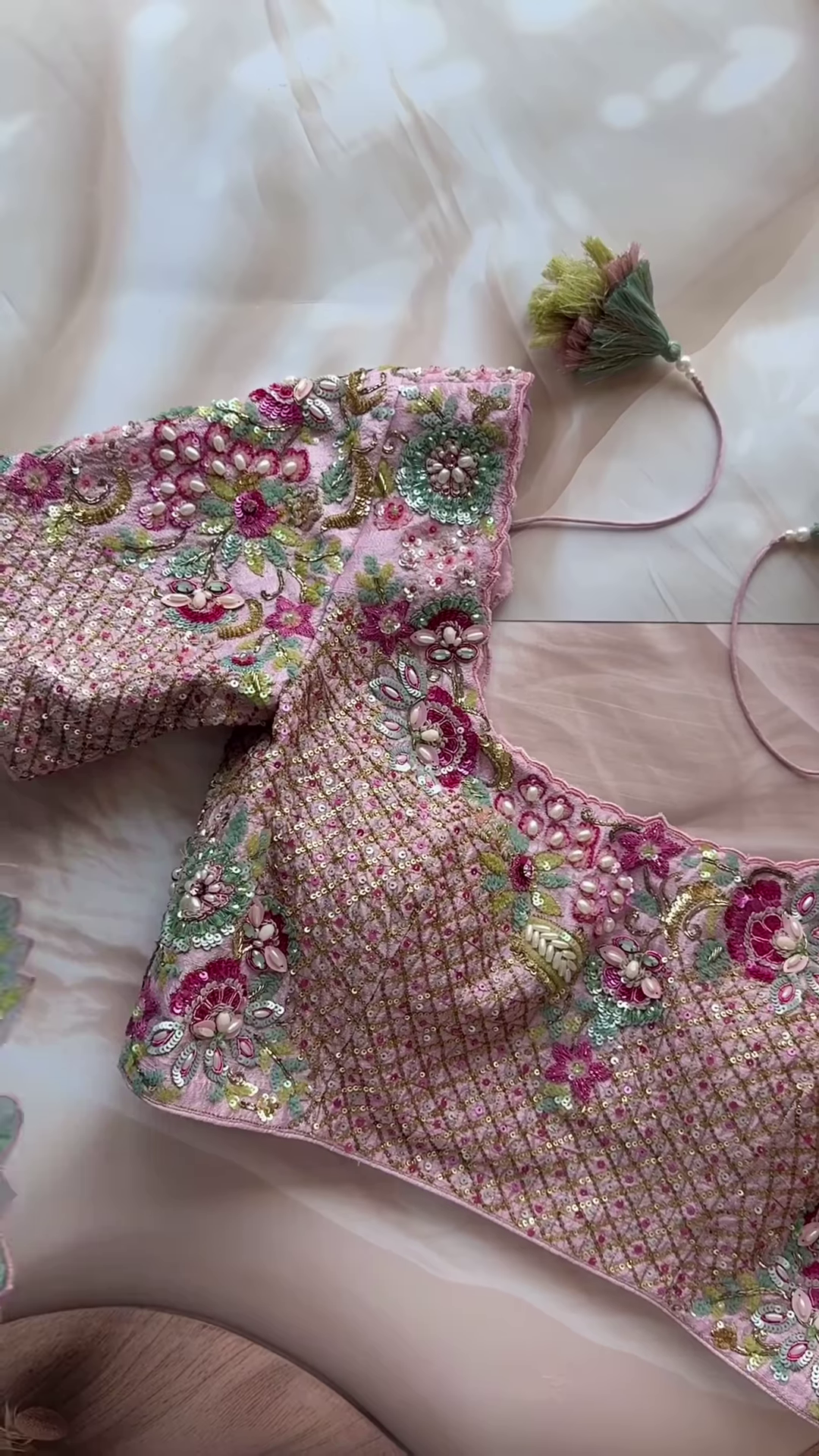 Indulge in textile artistry with this elegant sheer fabric panel showcasing intricate embroidery across two distinct tones—rose pink and ocean blue. Ideal for high-visibility occasionwear, boutique tailoring edits, or ethnic fusion garment creations, this textile blends shimmer, color play, and artisanal precision.