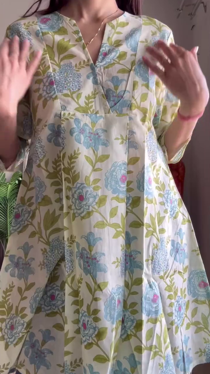 The kurta features a modest round neckline with a short slit for a relaxed fit. Three-quarter sleeves give it a versatile appeal, making it easy to wear for both casual and semi-formal occasions.